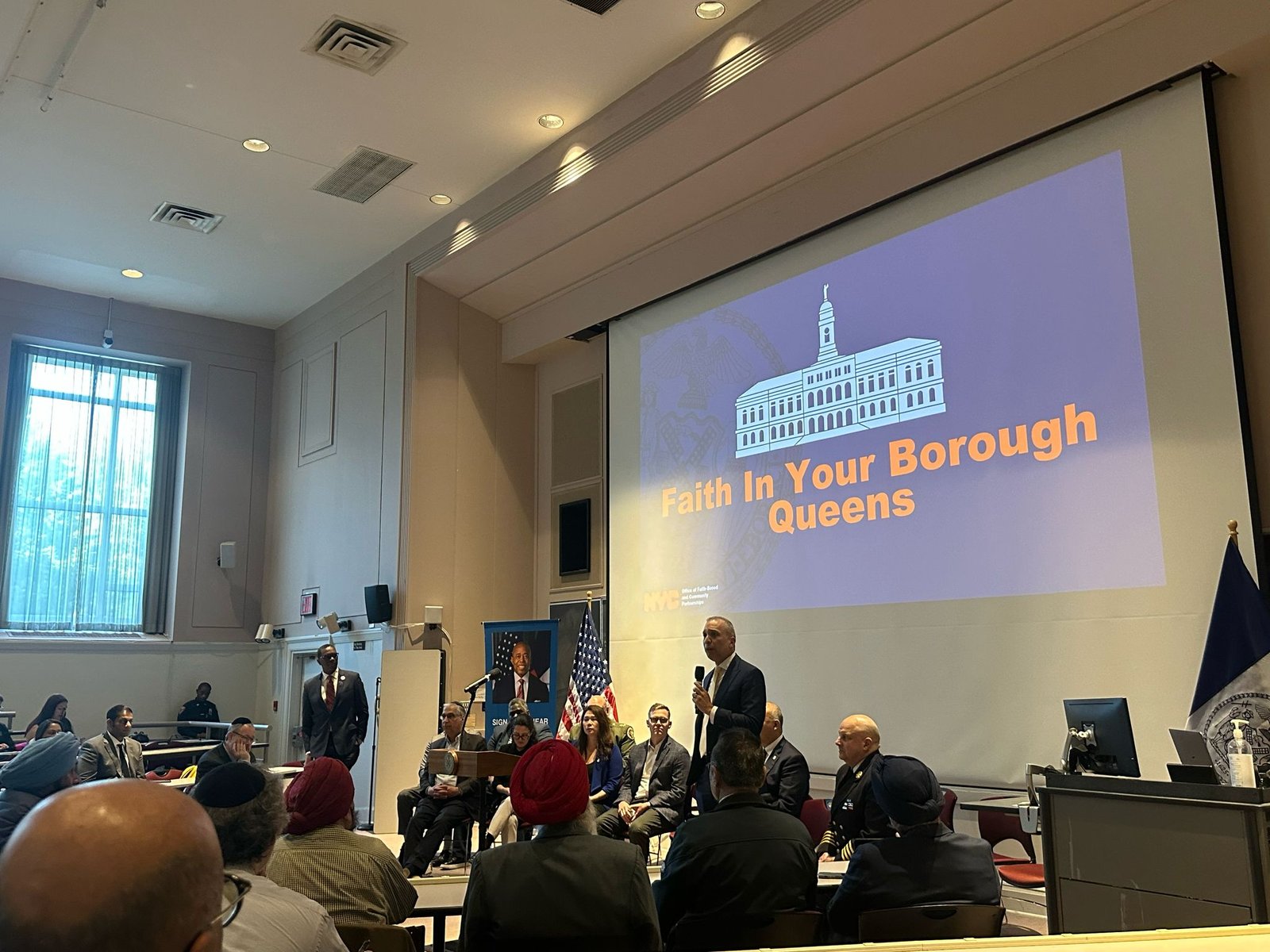 A crowd of faith and community leaders filled Queens Hall at Queens College on Monday, April 28 at 5:30 PM for the latest installment of the Faith in Your Borough (5 Boro Tour & Evening of Faith) initiative. Hosted by the Mayor’s Office of Faith-Based and Community Partnerships (OFCP), the event aimed to connect houses of worship and nonprofit organizations with key city agencies to address borough-specific concerns and expand community access to public services.