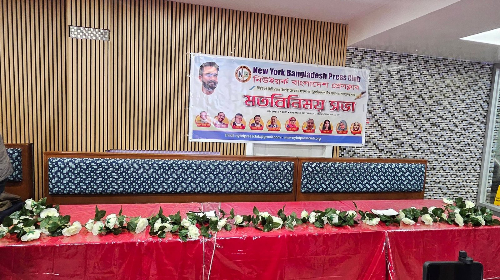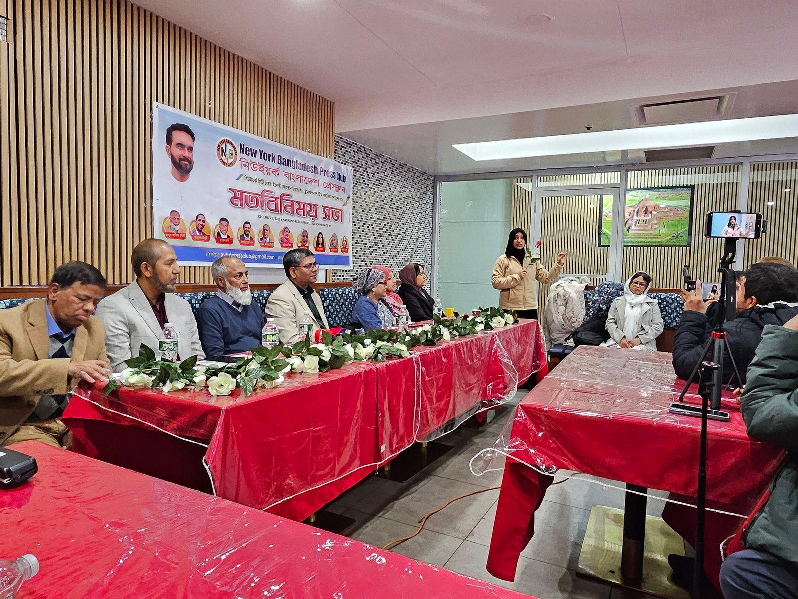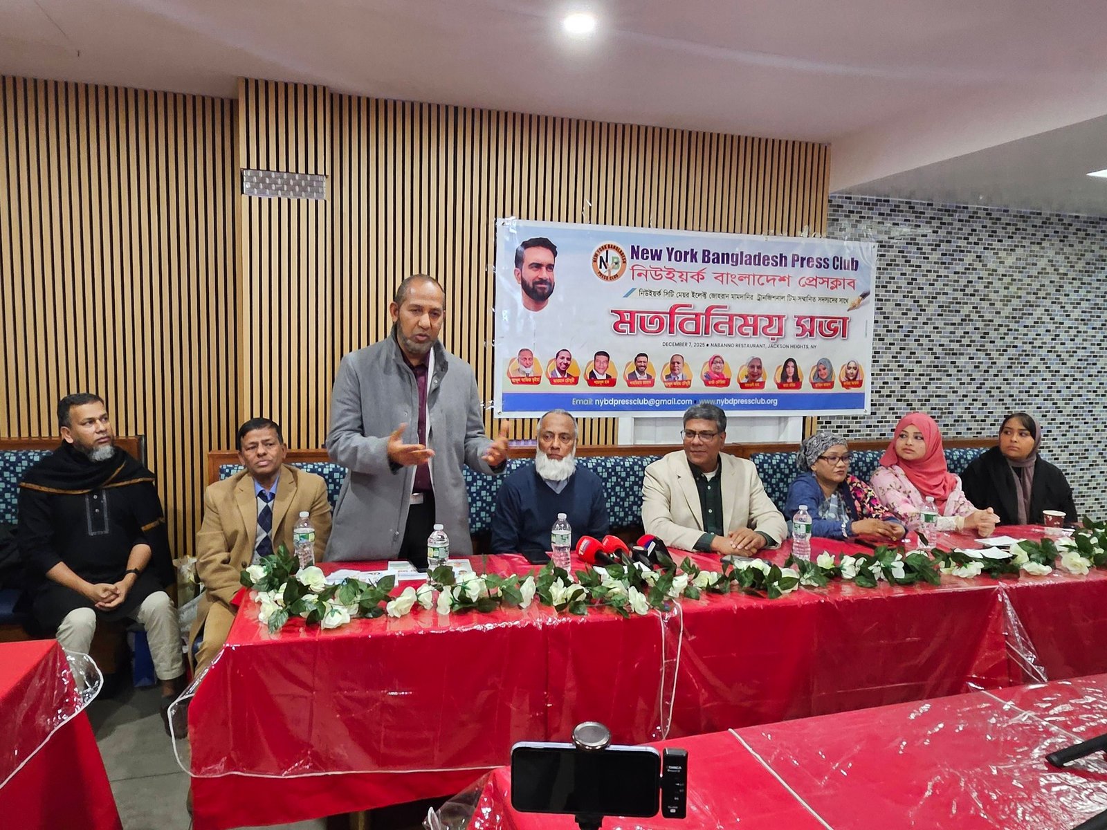 Held at Nobanna Party Hall in Jackson Heights on Sunday, December 7, the meeting brought together journalists, elected officials, transition team members, and community advocates for an evening of discussion, collaboration, and reflection. Presided over by Press Club President Monowar Islam and conducted by General Secretary Mominul Islam Mojumder, the event opened with a recitation from the Qur’an by Club Treasurer Rashid Ahmad and welcome remarks from the President.