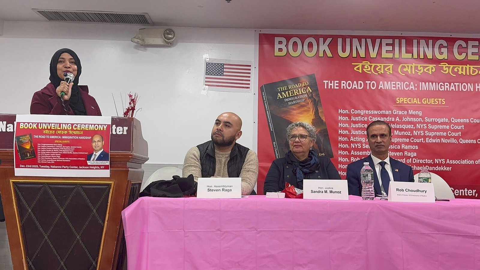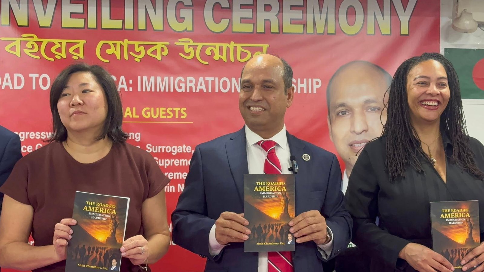 In a heartfelt evening of reflection and solidarity, Attorney Moin Choudhury, Esq officially launched his new book, “The Road to America: Immigration Hardship,” at Nabanno Restaurant & Party Center, drawing a diverse and distinguished crowd of supporters, legal professionals, elected officials, and community members.