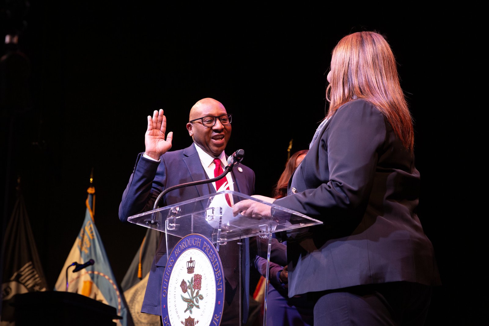 Donovan Richards was sworn in for his second four-year term as Queens Borough President during a ceremony at Queens College’s Goldstein Theatre in Flushing on Feb. 8.