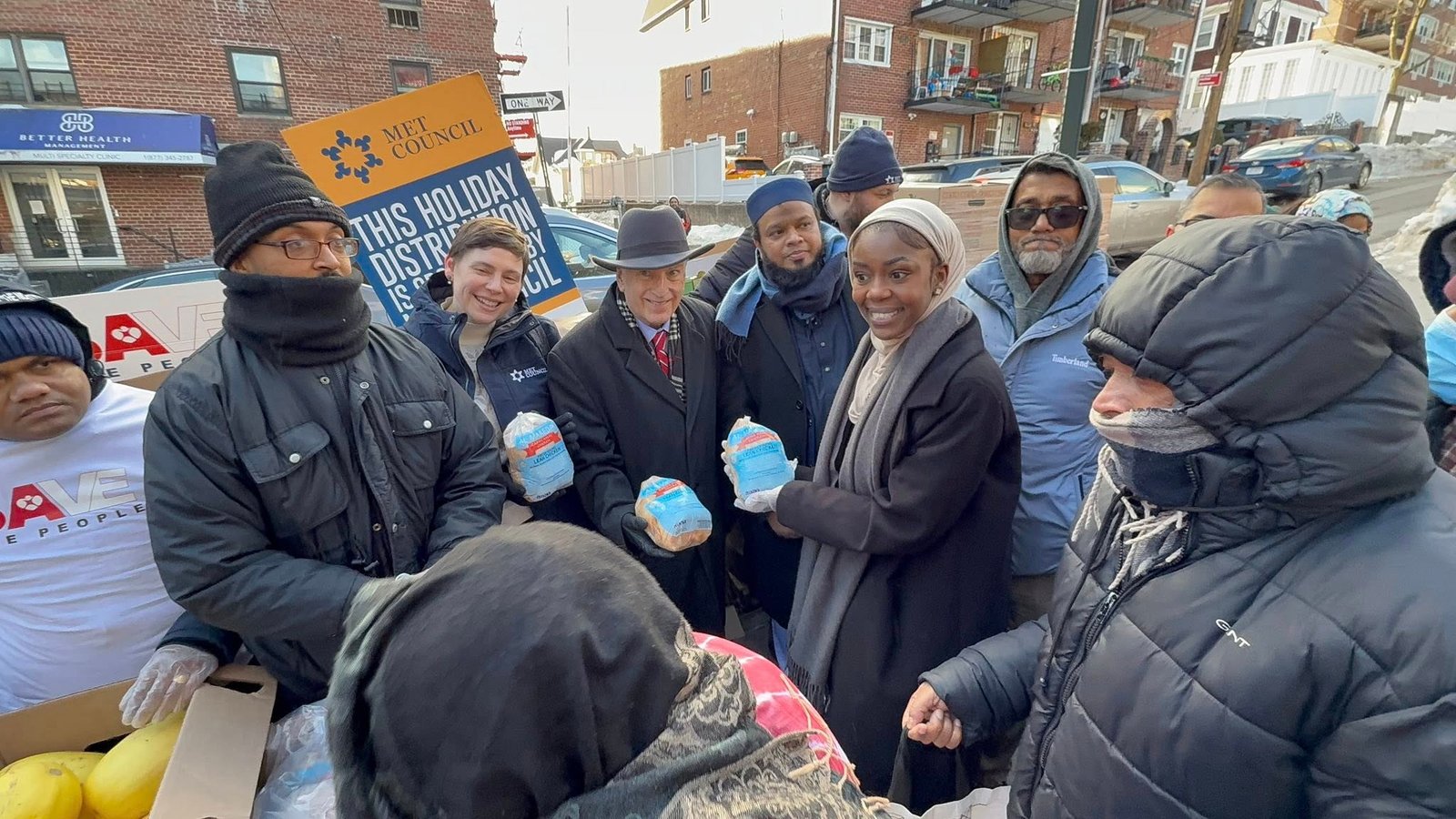 The food distribution was made possible through the generous support of Met Council, which supplied the food items. Representatives from the organization, including Hannah Lupien, Carla Kay, and Ben Zaientz, were present at the event, demonstrating strong partnership and collaboration. The gathering was also attended by David Weprin, whose presence underscored the broader community support for the initiative. Support from the Jamaica Bangladesh Society further strengthened the effort, alongside volunteers who traveled from other boroughs to serve families in need.